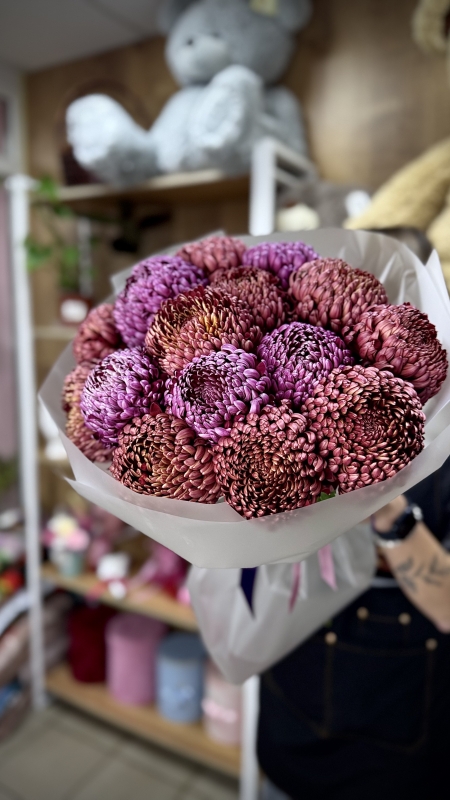 Хризантемы бигуди — настоящая жемчужина осеннего сада. Их округлые, словно мягкие облака, лепестки излучают тепло и уют, напоминая о последних солнечных днях перед наступлением зимы. Каждая цветочная головка, словно тщательно завитая прическа, радует глаз своими яркими оттенками — от нежного кремового до насыщенного бордового.